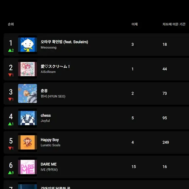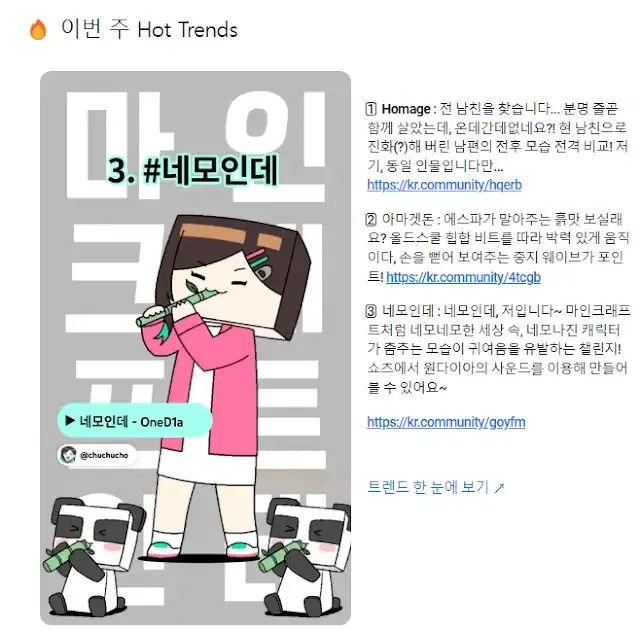 내부 기획과 제작만으로 유튜브 주간 추천곡 차트에 진입한 사례입니다.